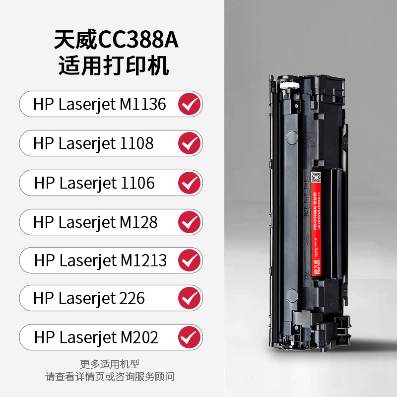 天威原裝12A硒鼓適用惠普M100510... 天威原裝CF510A粉盒適用惠普HP20... 天威PR-CC388AG CC388A加... 天威原裝適用聯想LT2441 m7400...