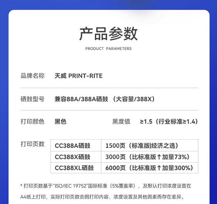 參數 [品牌] 天威 [型號] CC388X [單位] 盒