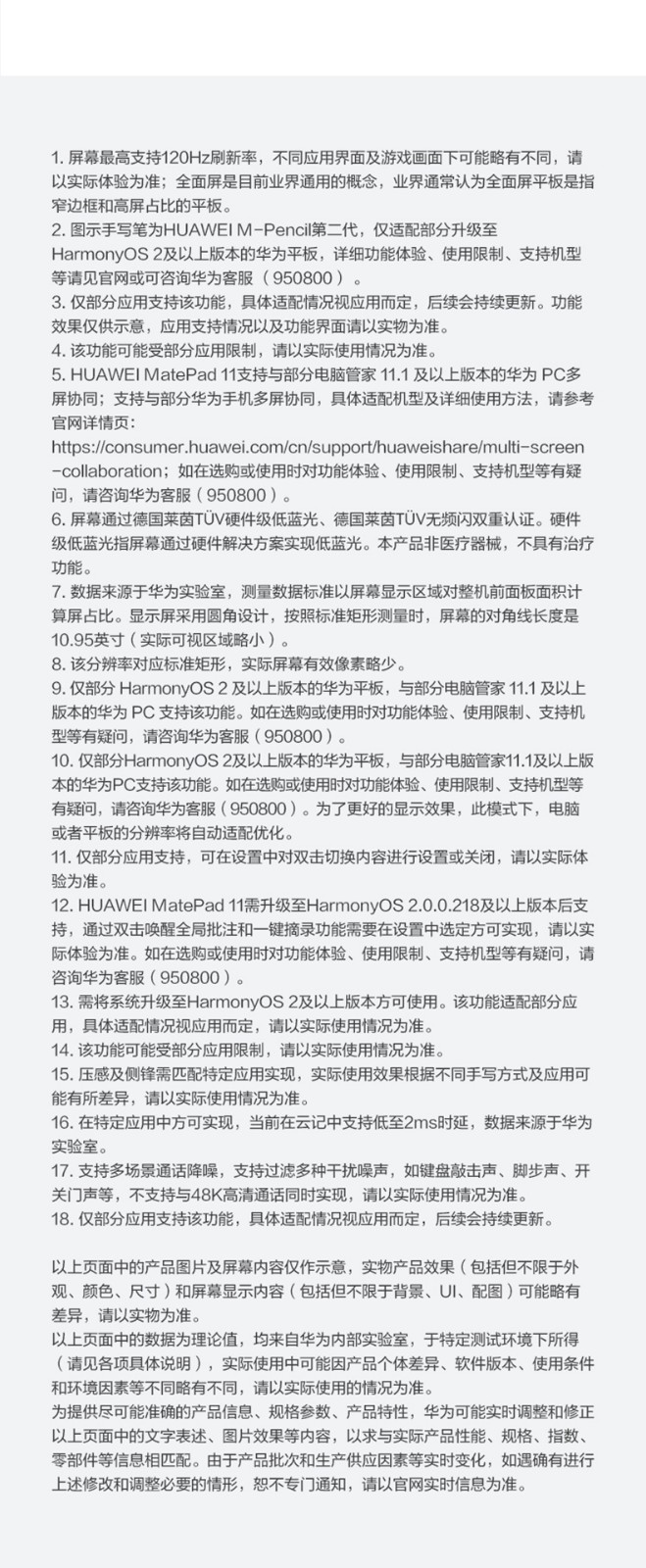 參數 [品牌] 華為 [型號] 華為/HUAWEI MatePad11 [單位] 臺