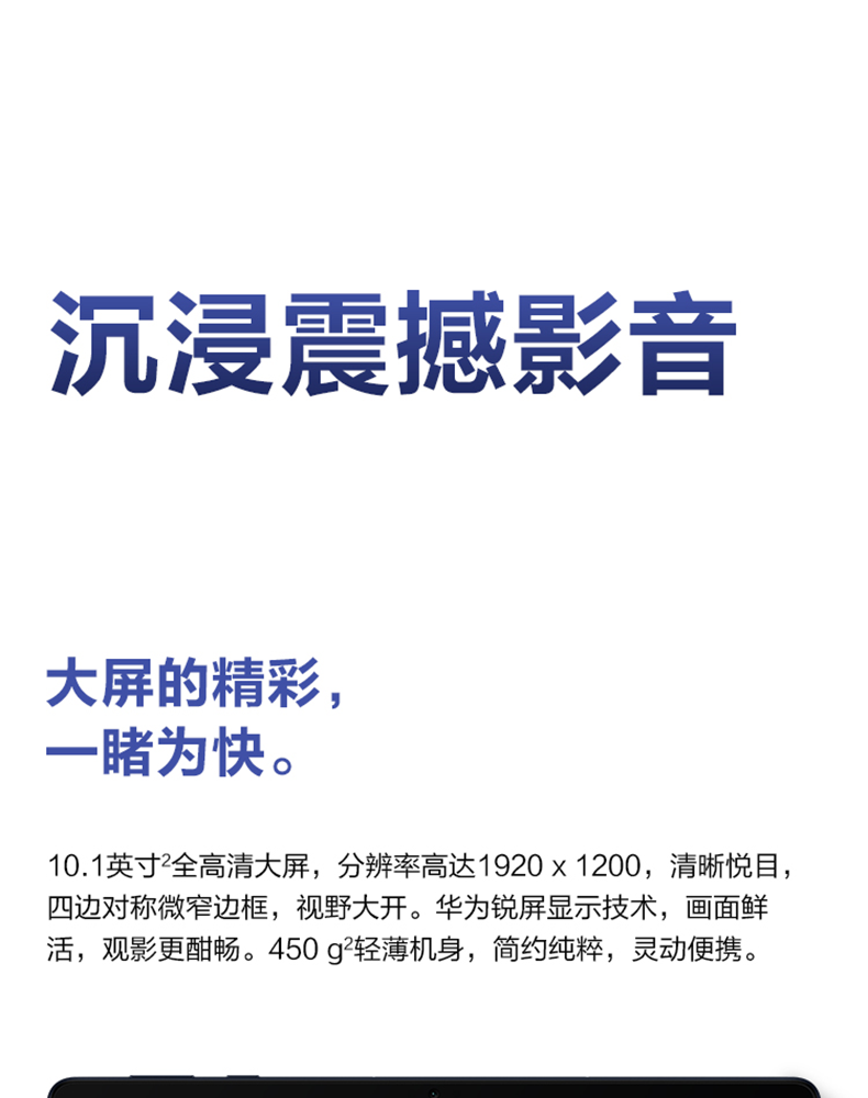 規格參數 其他屬性 售后服務 全國聯保 電信設備進網許可證編號 17-5043-201324 處理器品牌 海思 存儲 存儲類型 EMMC 內存容量 4GB 存儲容量 4GB+64GB 4GB+128GB 顯示 分辨率 1920x1200 觸摸屏類型 IPS 十點觸控電容屏 像素 200萬 屏幕尺寸 10.1英寸 后置攝像頭像素 500萬 基本參數 品牌 Huawei/華為 型號 暢享平板2 接口類型 Nano-SIM 卡接口(僅全網通版本支持),3.5mm耳機接口,USB Type-C接口 核心數 八核心 顏色分類 香檳金 深海藍 CPU主頻 4×Cortex A73 2.0GHz + 4×Cortex A53 1.7GHz 廠商 華為 處理器構架 Cortex-A73 Based 處理器型號信息 Kirin710A(海思麒麟710A) 熱門功能 全高清屏幕,大振幅揚聲器,哈曼卡頓調音,教育中心,平行視界,暢連通話 操作系統 EMUI 10.1(基于Android 10) 網絡 網絡類型 全網通 WIFI