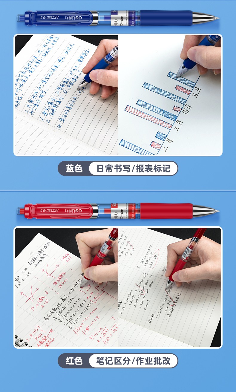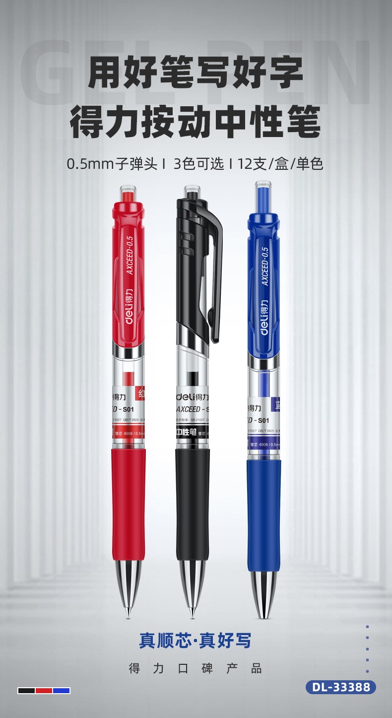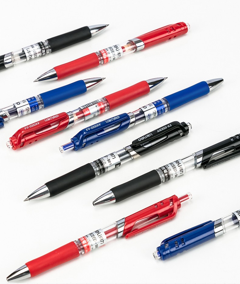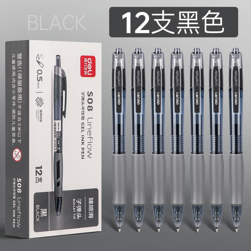 12支黑色-得力按動筆中性筆水筆學生用考試按壓式子彈頭碳素黑色水性簽字筆芯05mm圓珠筆藍黑紅筆教師辦公文具用品
