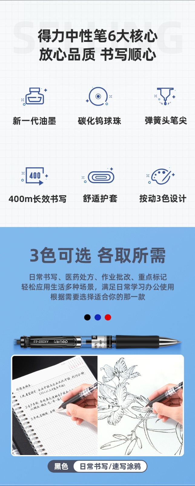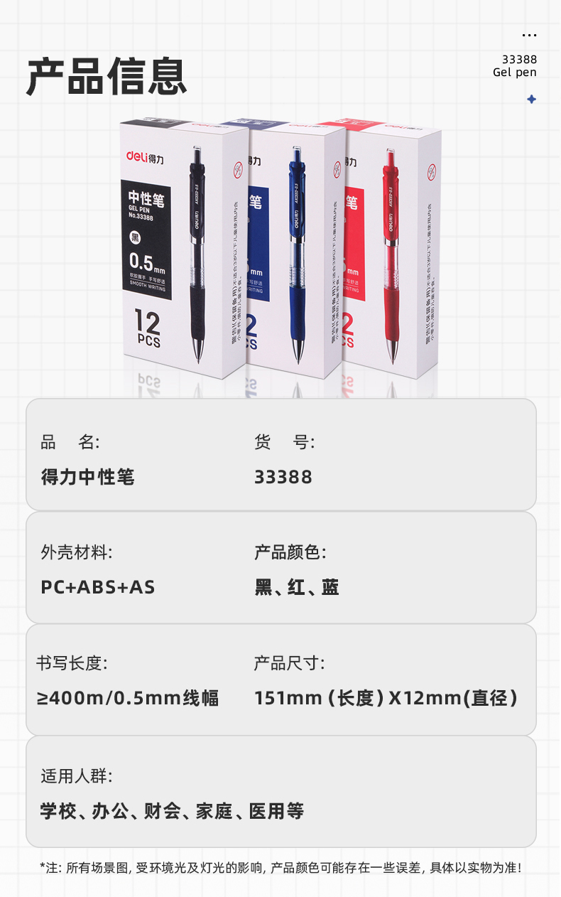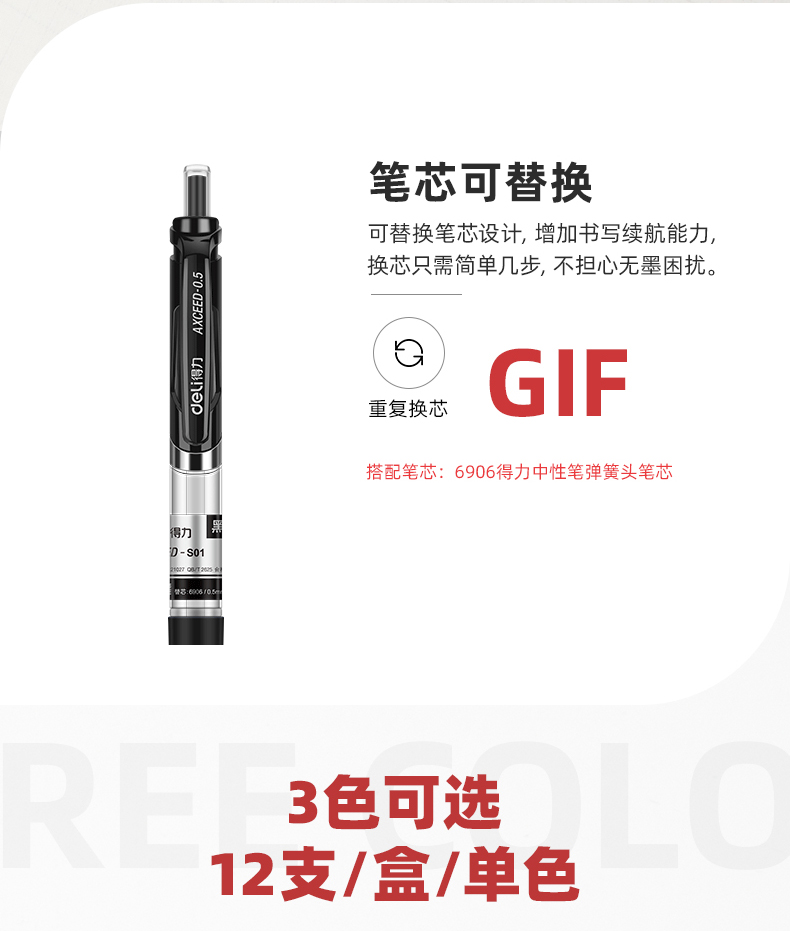 12支黑色-得力按動筆中性筆水筆學生用考試按壓式子彈頭碳素黑色水性簽字筆芯05mm圓珠筆藍黑紅筆教師辦公文具用品