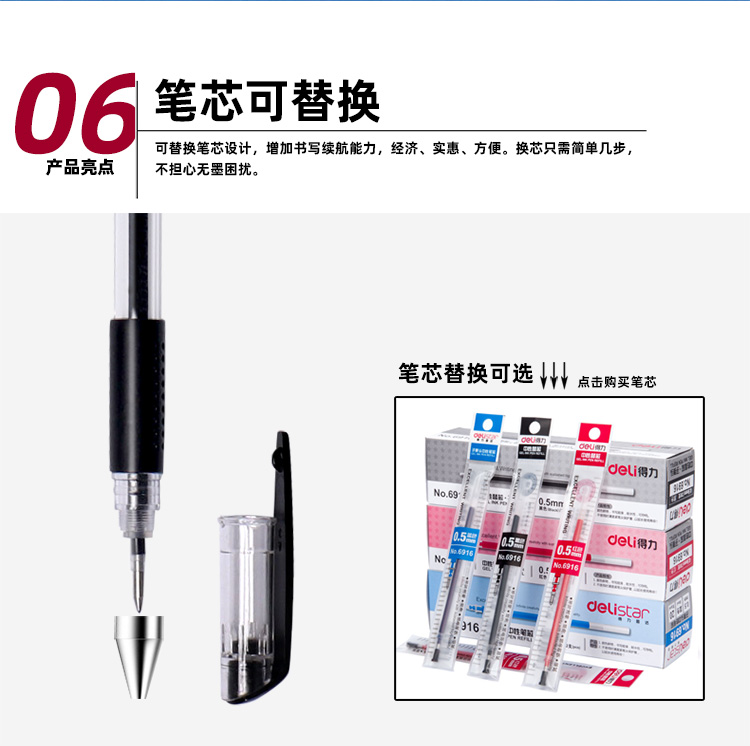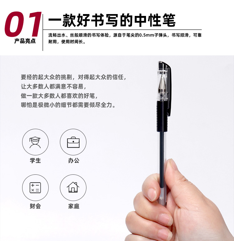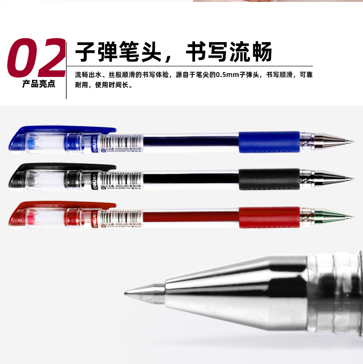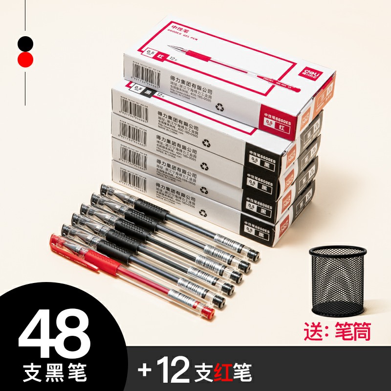48支黑色+12支紅筆-得力文具中性筆學生用黑色0.5mm子彈頭水筆藍紅簽字筆批改筆記賬筆辦公用品書寫工具碳素筆50/12支裝