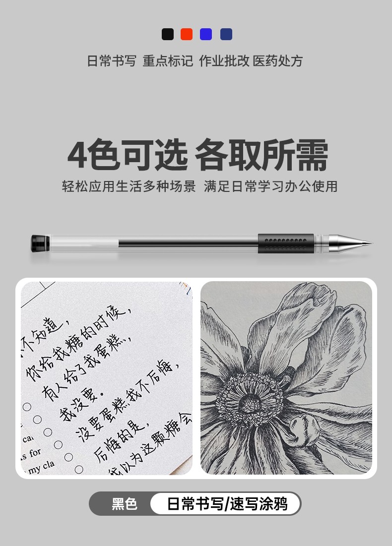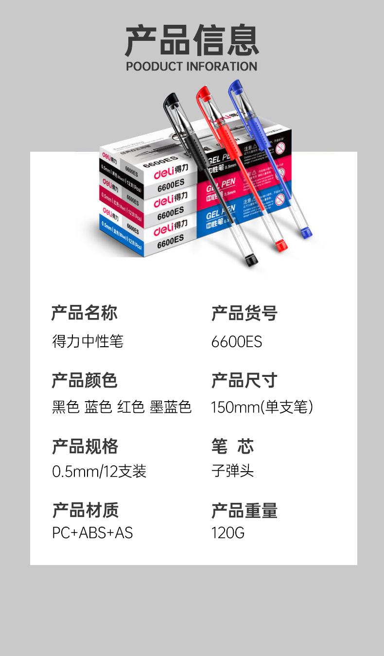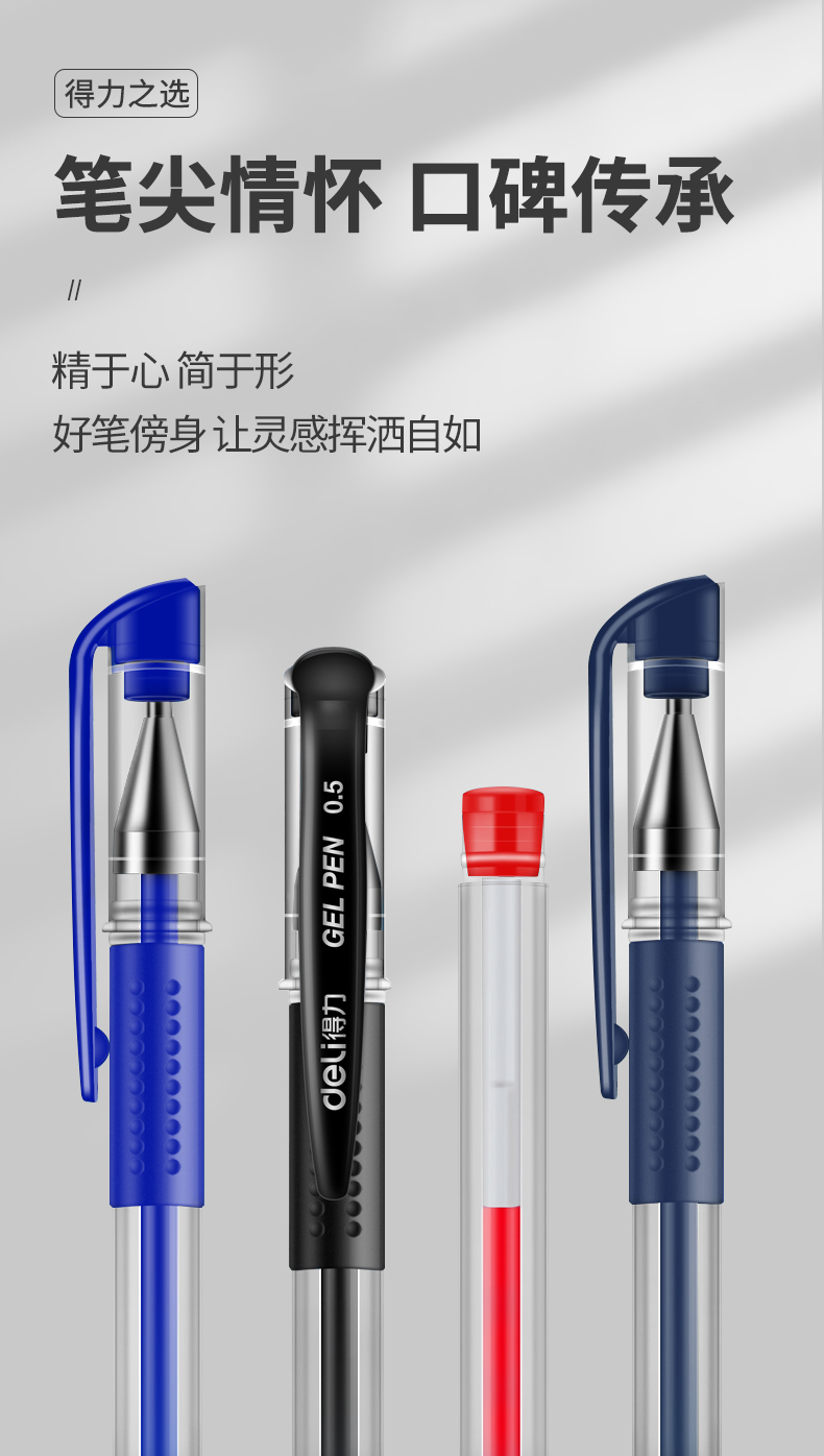36支黑+12支紅+12支藍色得力中性筆0.5黑色水筆簽字筆碳素筆12支學生用文具用品藍黑筆辦公簽名筆水性筆紅筆考試黑筆圓珠筆辦公用品