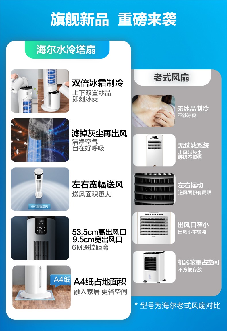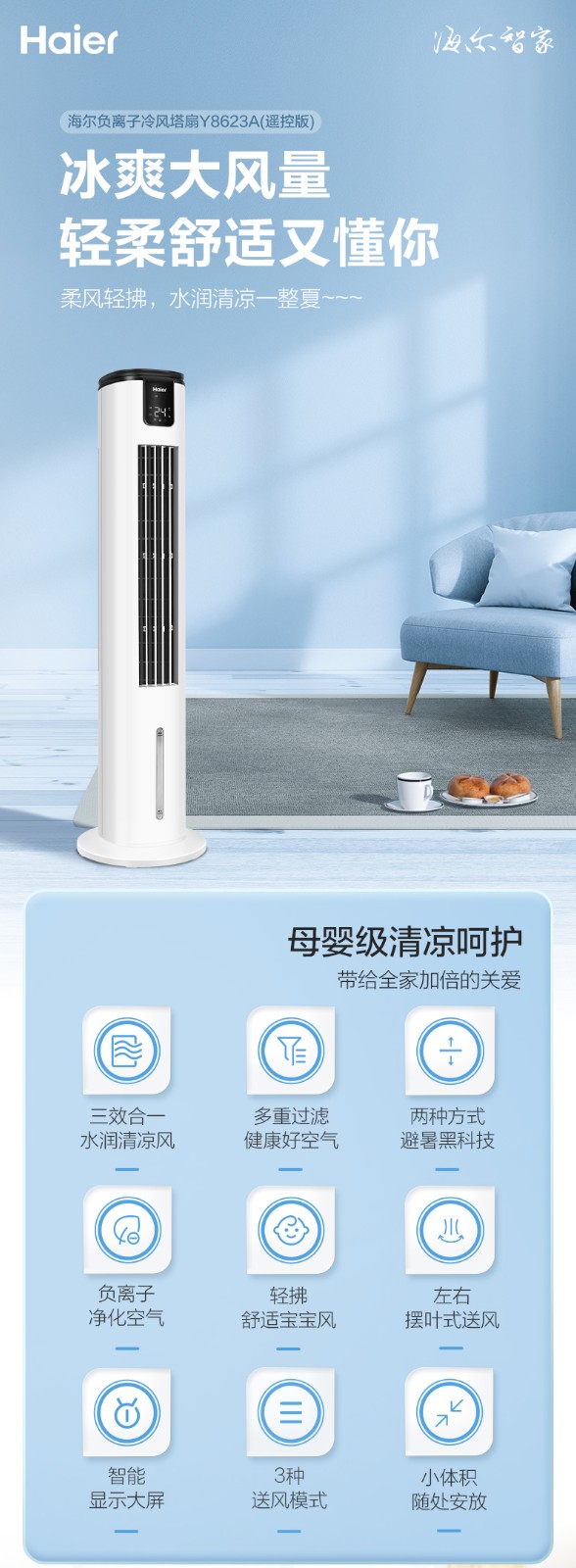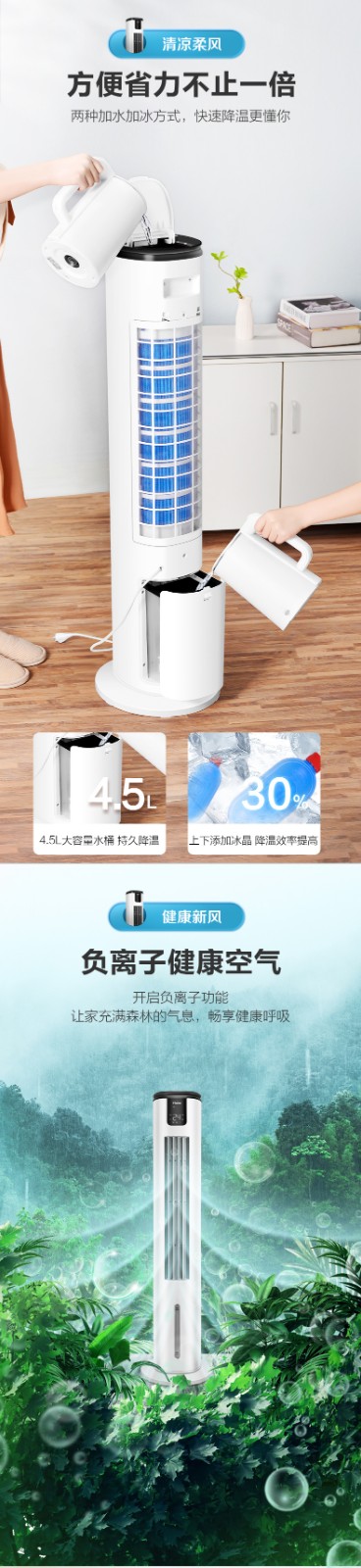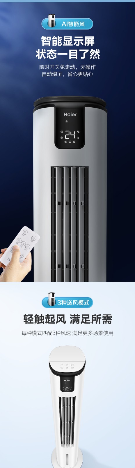 白色-海爾空調扇制冷電風扇加水冷風機塔扇家用宿舍租房神器移動小空調