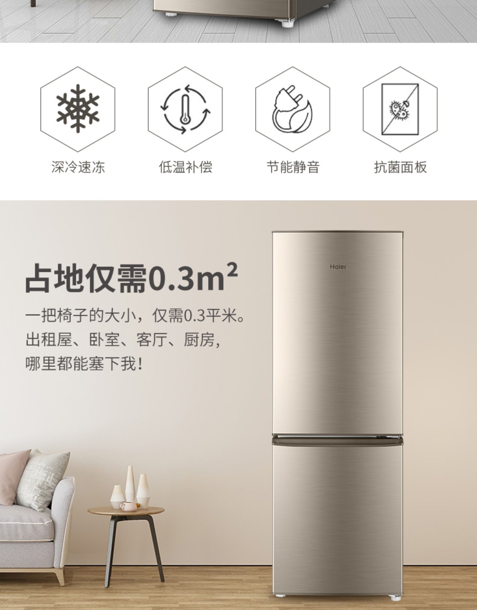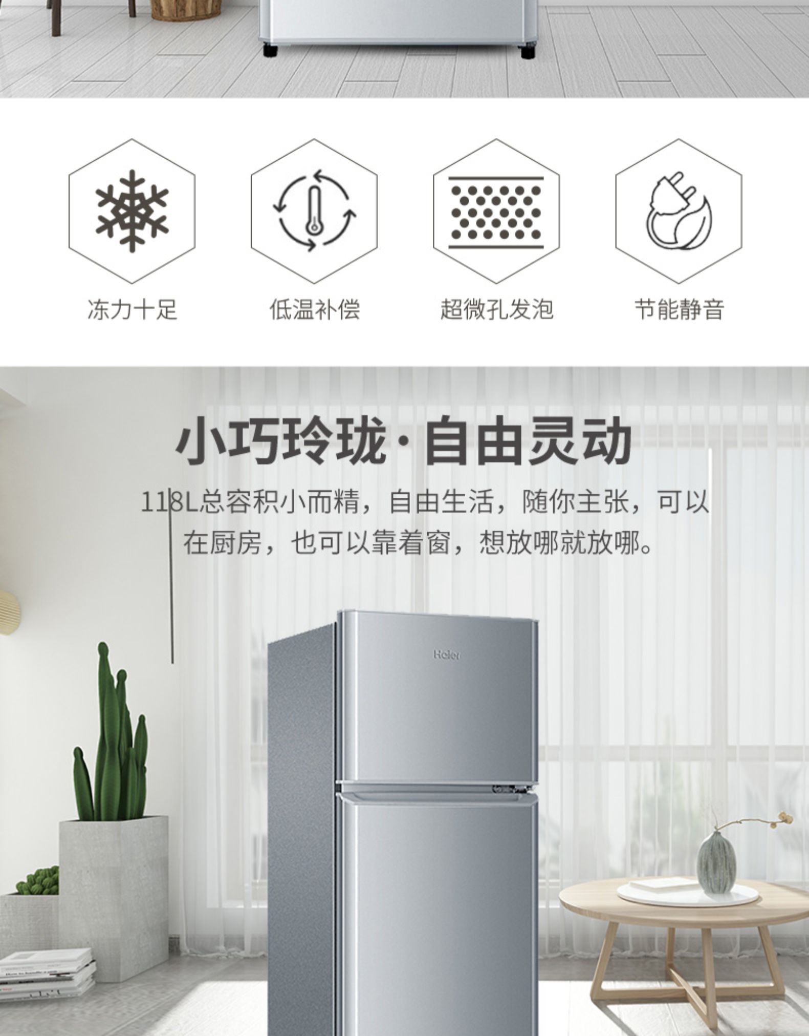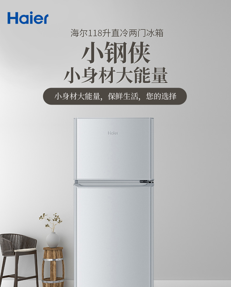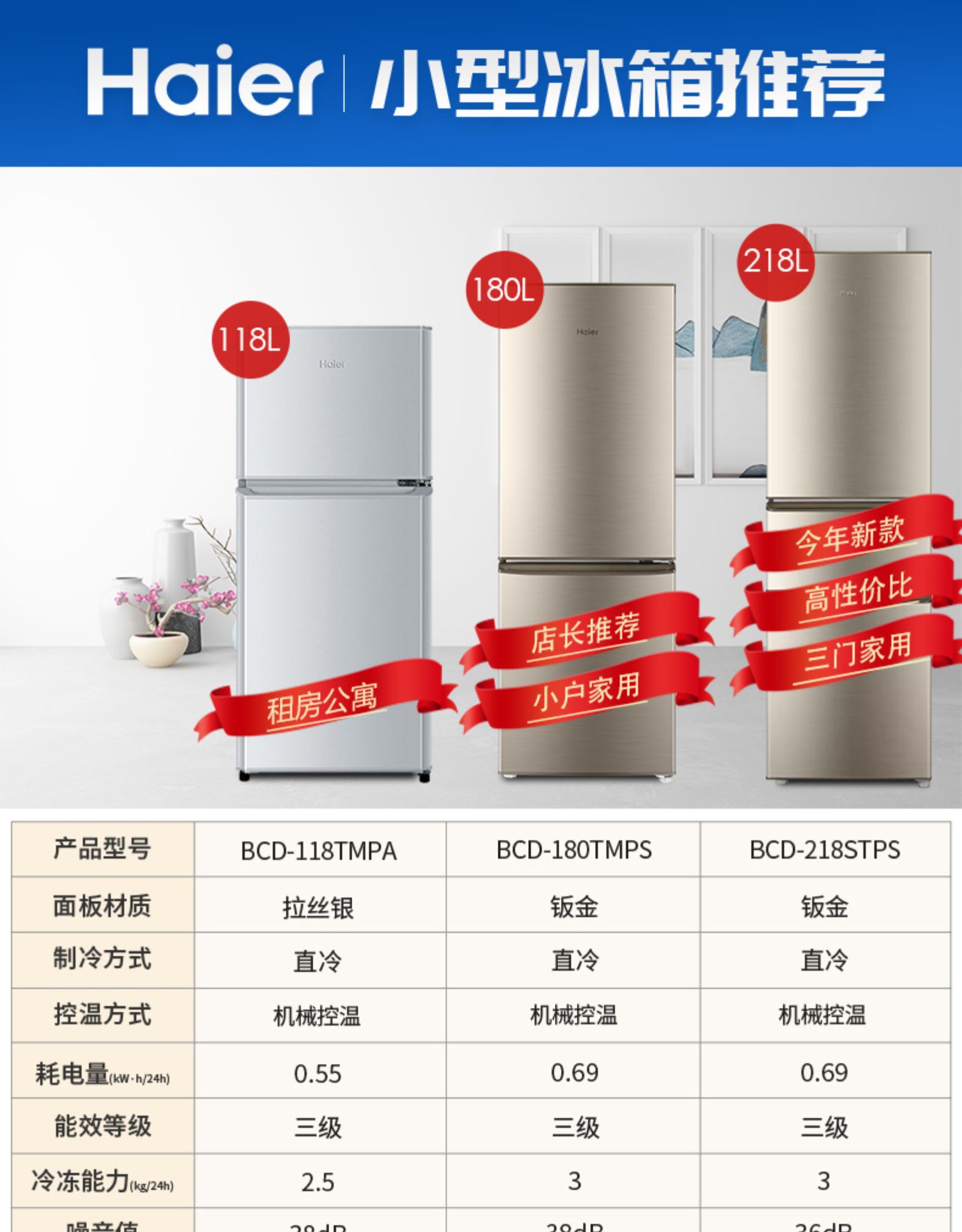 33升-海爾電冰箱兩門180升/118L雙開門家用小型宿舍租房節(jié)能官方旗艦店