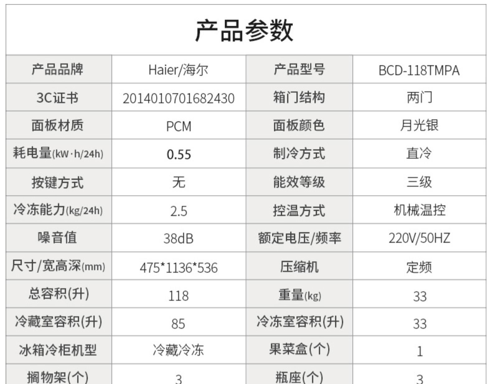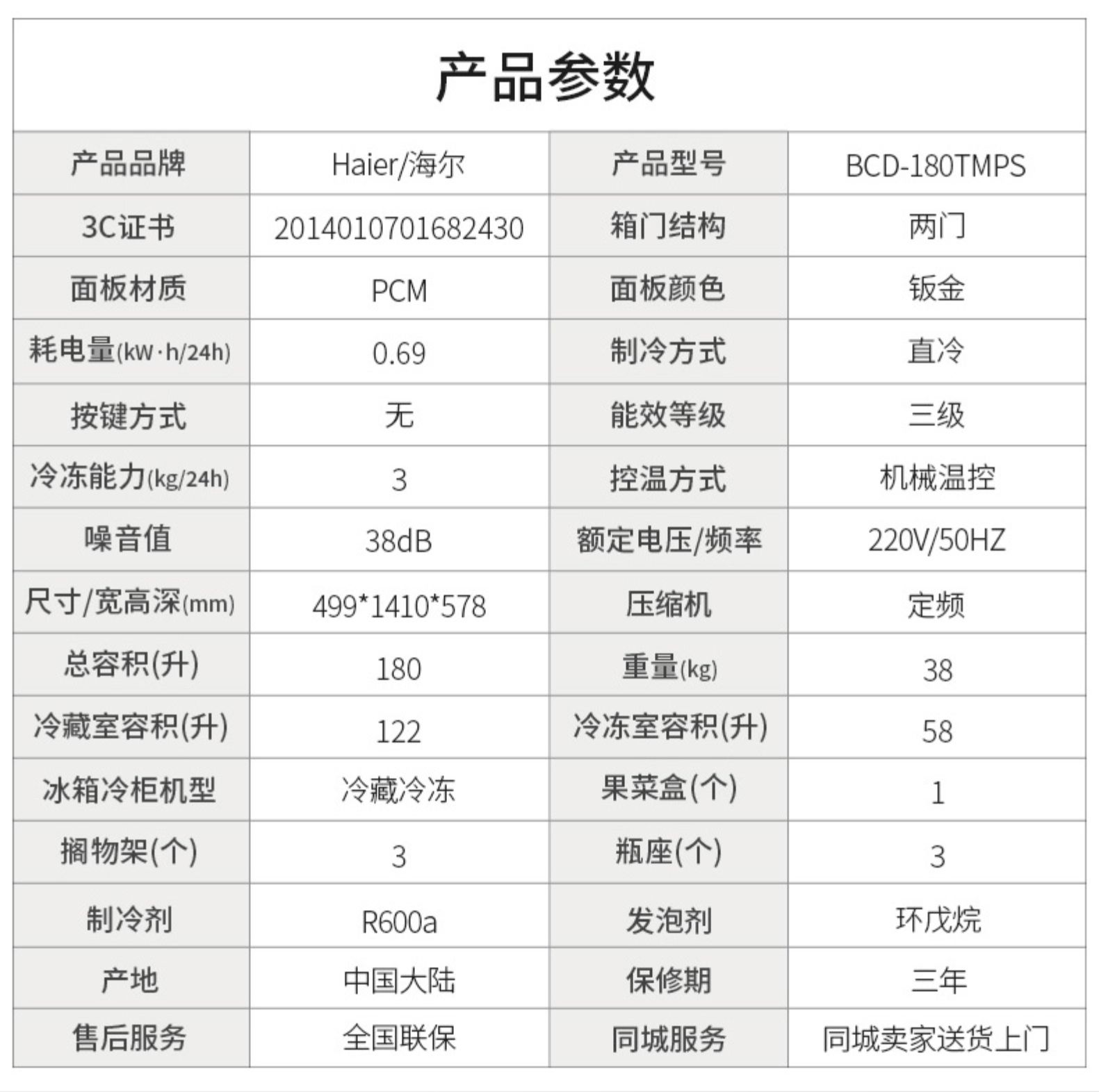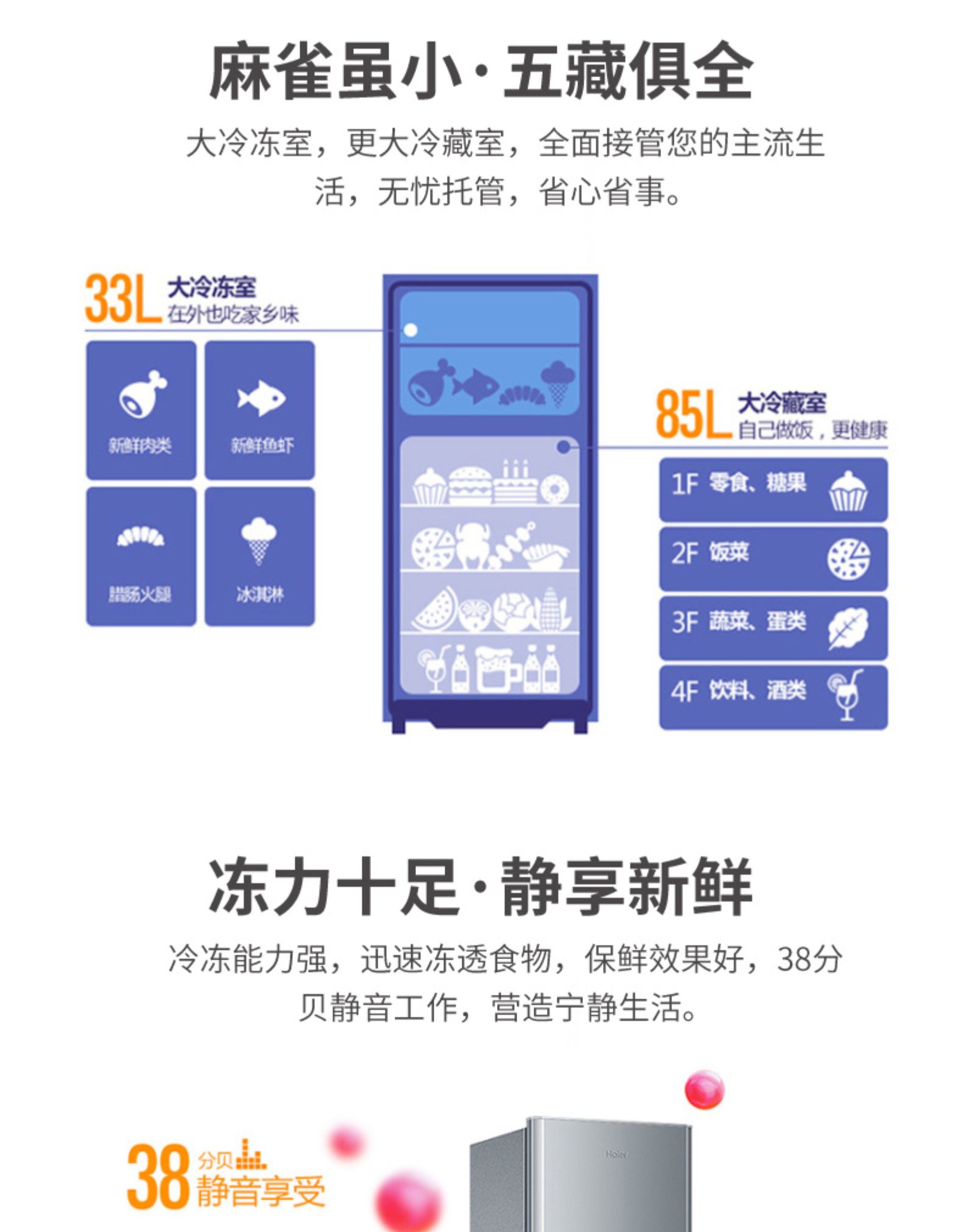 33升-海爾電冰箱兩門180升/118L雙開門家用小型宿舍租房節(jié)能官方旗艦店