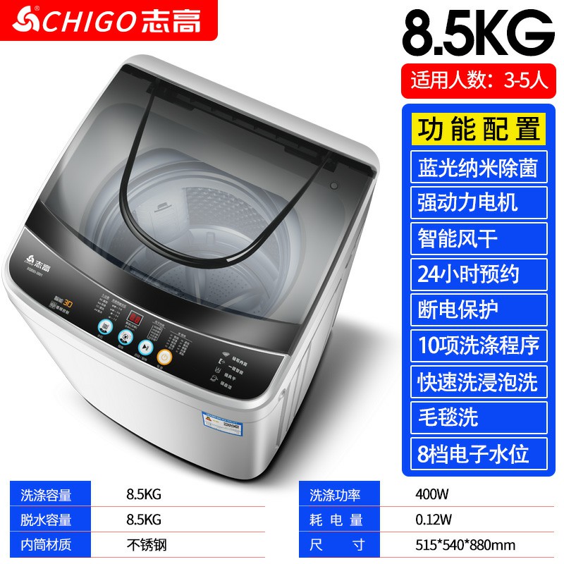 8.5kg-志高7.5KG/8.5洗衣機全自動家用小型宿舍嬰兒童迷你烘干洗脫一體