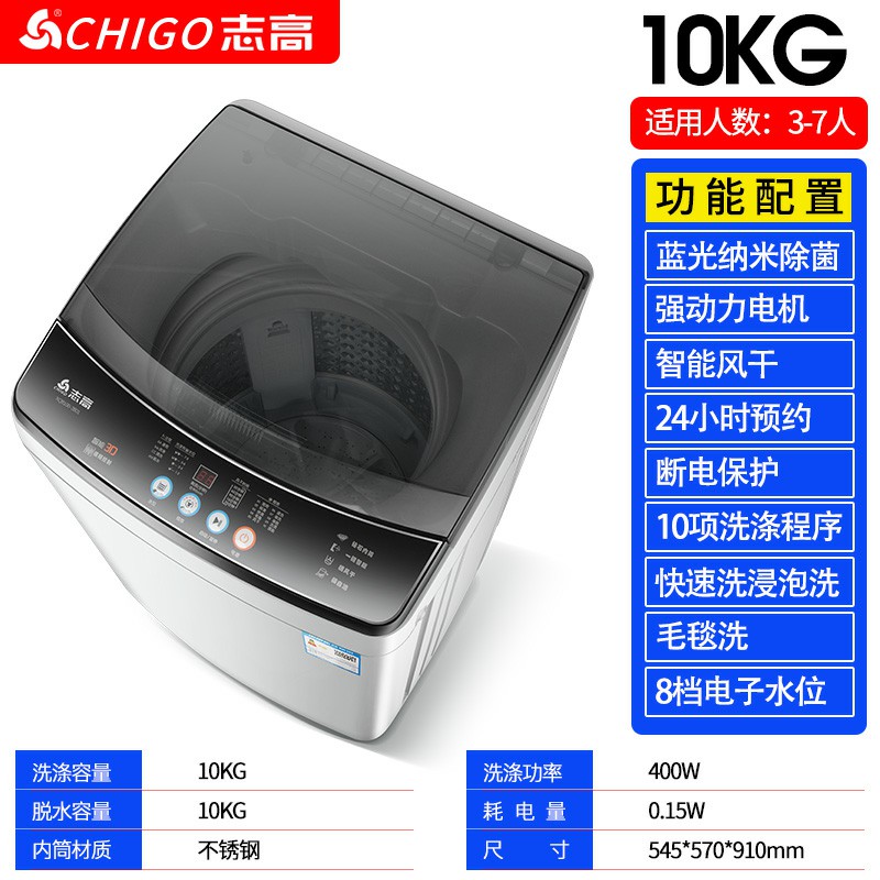 10kg-志高7.5KG/8.5洗衣機全自動家用小型宿舍嬰兒童迷你烘干洗脫一體
