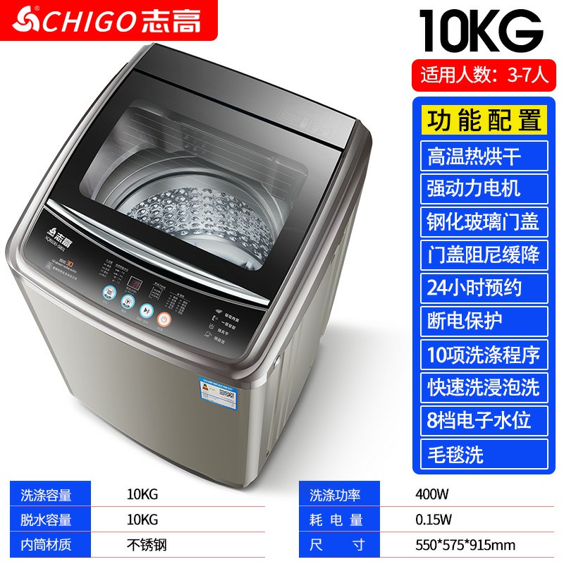 10kg-志高7.5KG/8.5洗衣機全自動家用小型宿舍嬰兒童迷你烘干洗脫一體