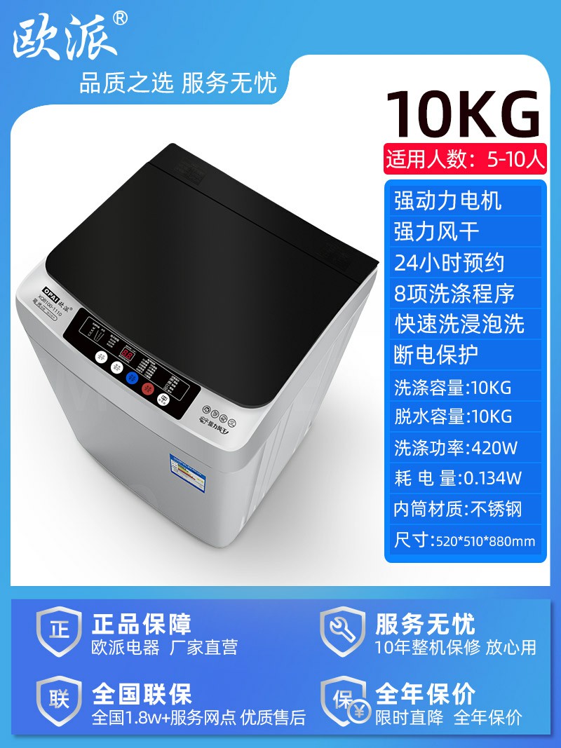 10kg-歐派洗衣機(jī)全自動波輪10公斤租房家用小型迷你嬰兒烘干脫水一體機(jī)