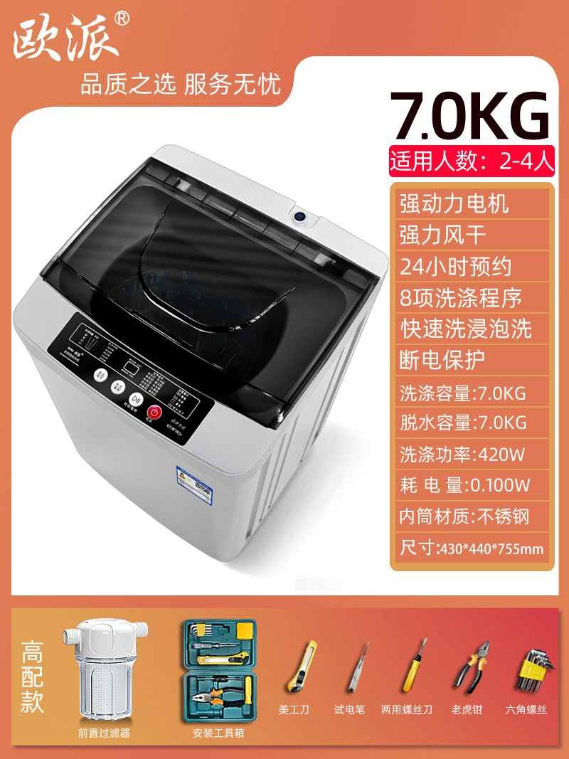7.0kg-高配工具款-歐派洗衣機全自動波輪10公斤租房家用小型迷你嬰兒烘干脫水一體機
