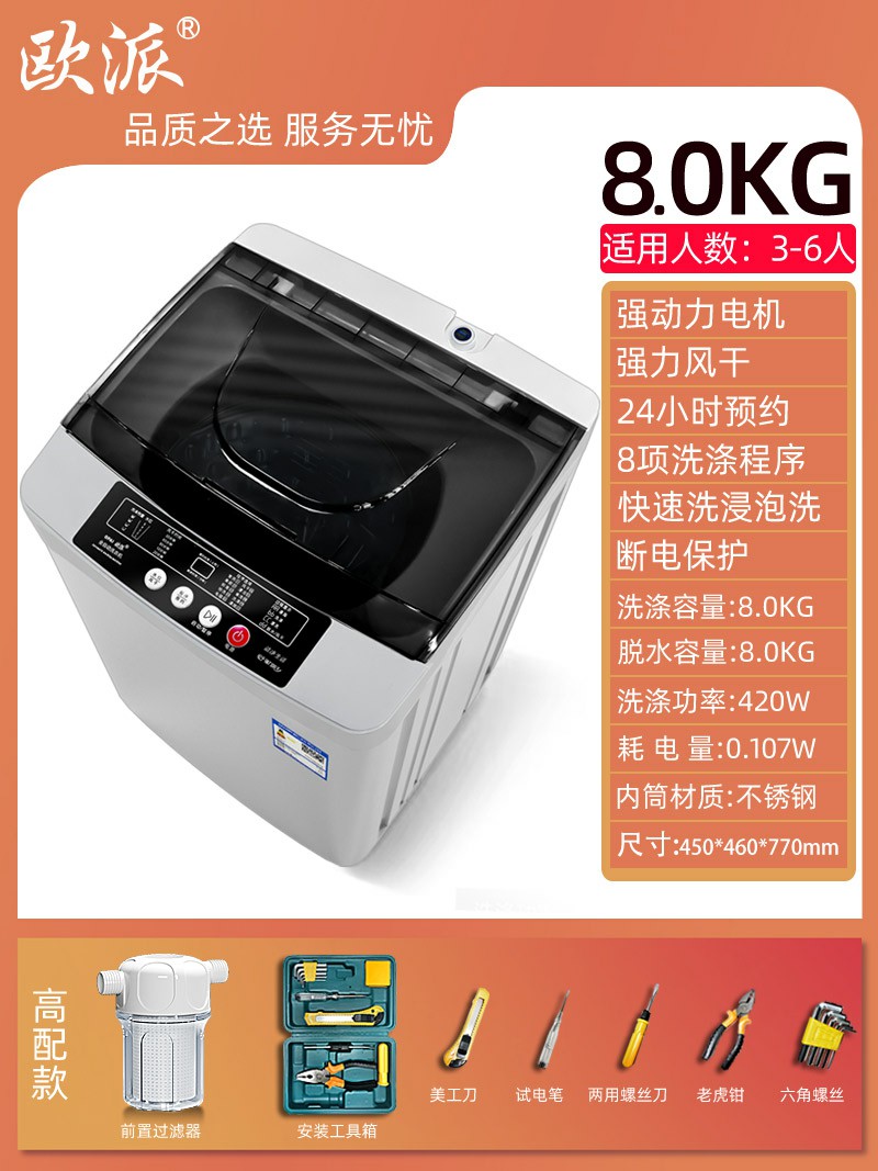 8.0kg-高配工具款-歐派洗衣機全自動波輪10公斤租房家用小型迷你嬰兒烘干脫水一體機