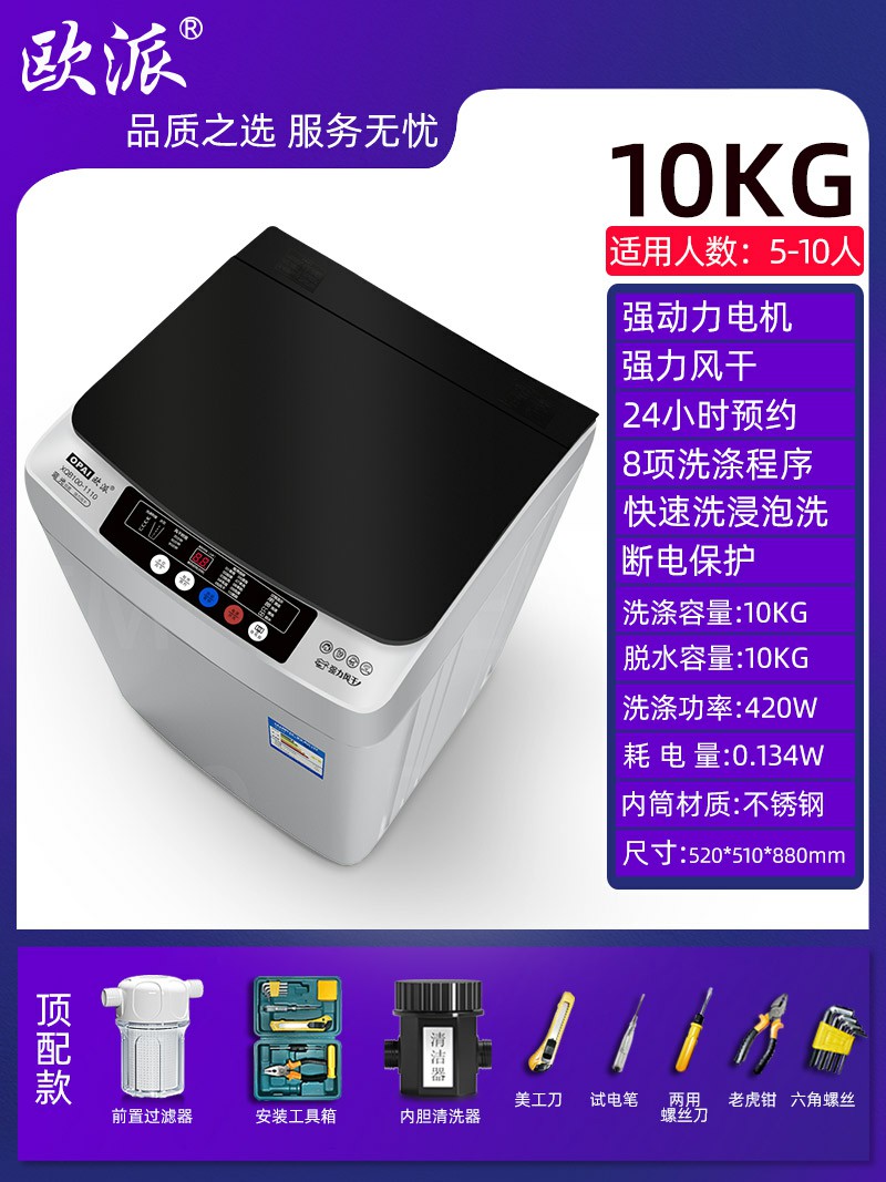 10kg-頂配工具款-歐派洗衣機全自動波輪10公斤租房家用小型迷你嬰兒烘干脫水一體機