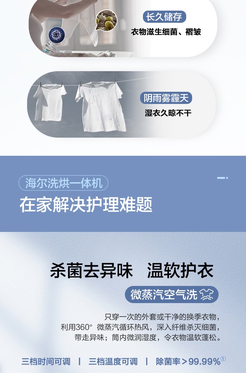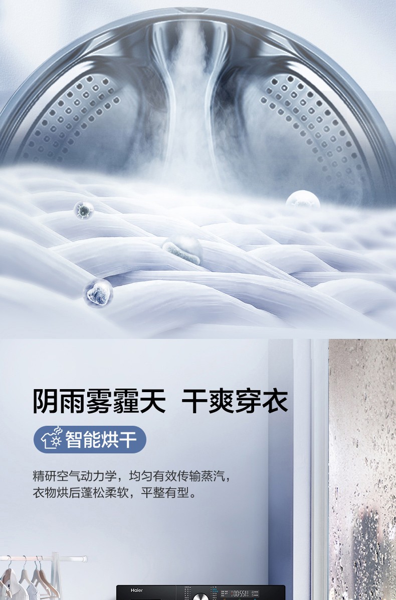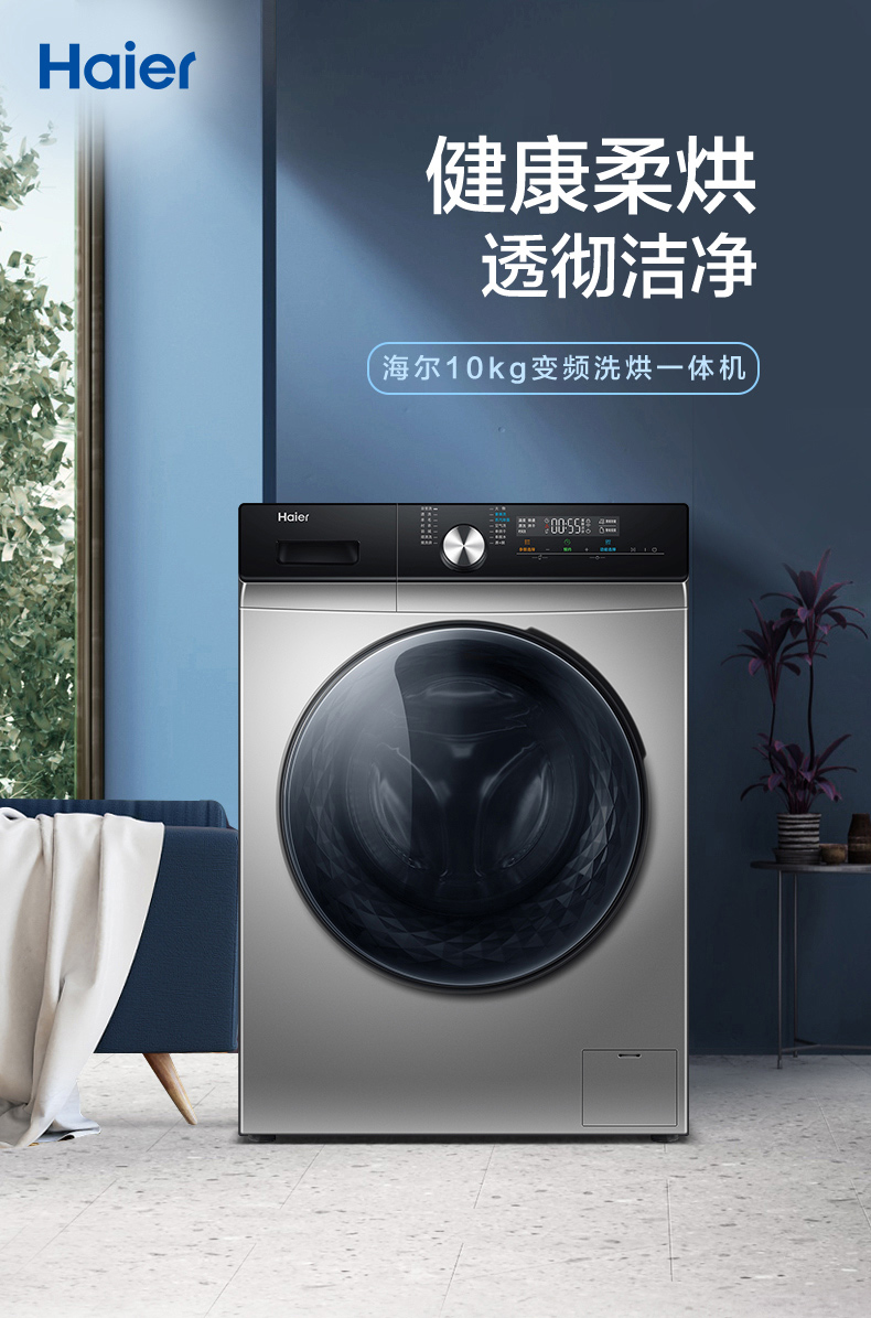 【除菌凈螨】海爾10KG家用變頻全自動滾筒洗烘一體洗衣機MAX6