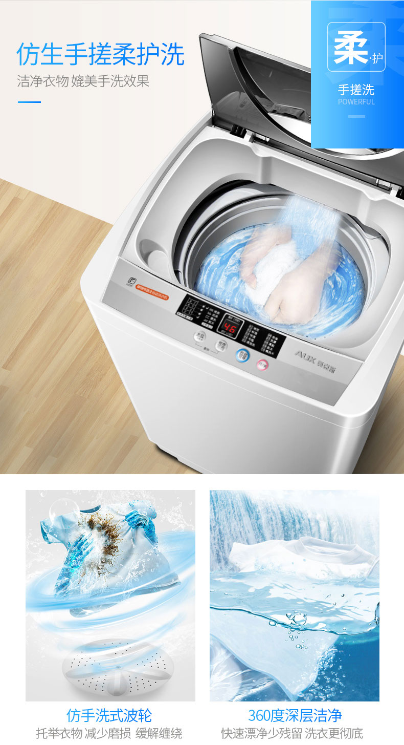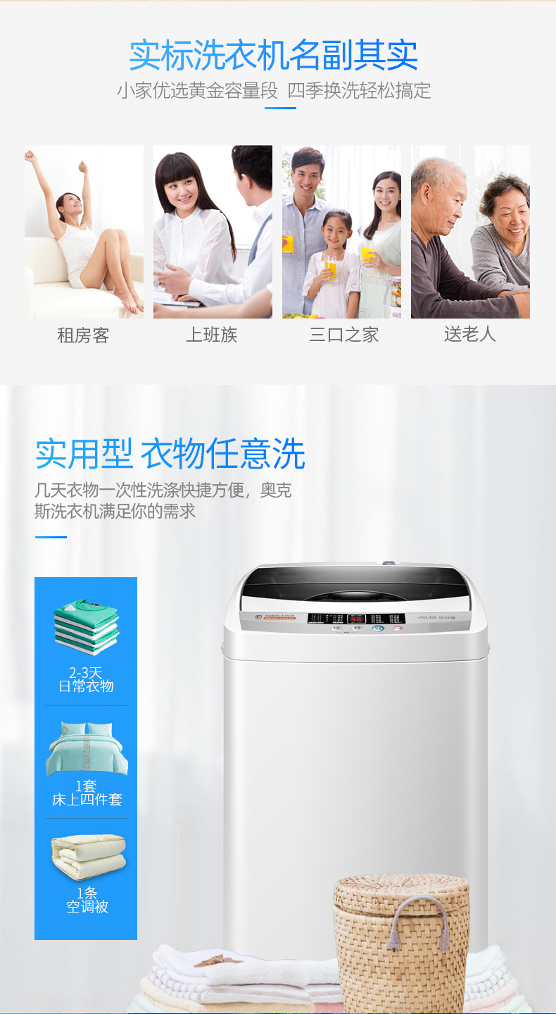 1-2人-奧克斯洗衣機(jī)全自動(dòng)小型5/6/8KG租房家用嬰兒迷你烘干洗脫一體機(jī)