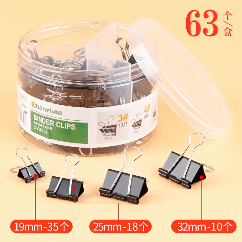 63個每盒-彩色長尾夾大中小號黑色燕尾夾文件夾子文具學生用書夾子試卷夾辦公用品大全金屬小票固定夾子辦公室票夾批發