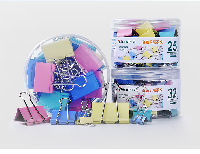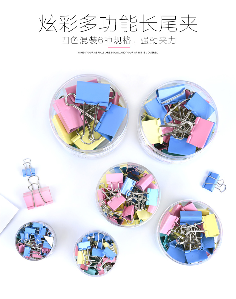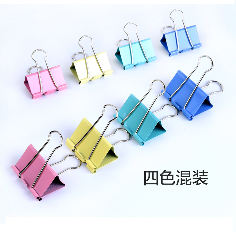 4色60支15mm-彩色長尾夾大中小號黑色燕尾夾文件夾子文具學生用書夾子試卷夾辦公用品大全金屬小票固定夾子辦公室票夾批發