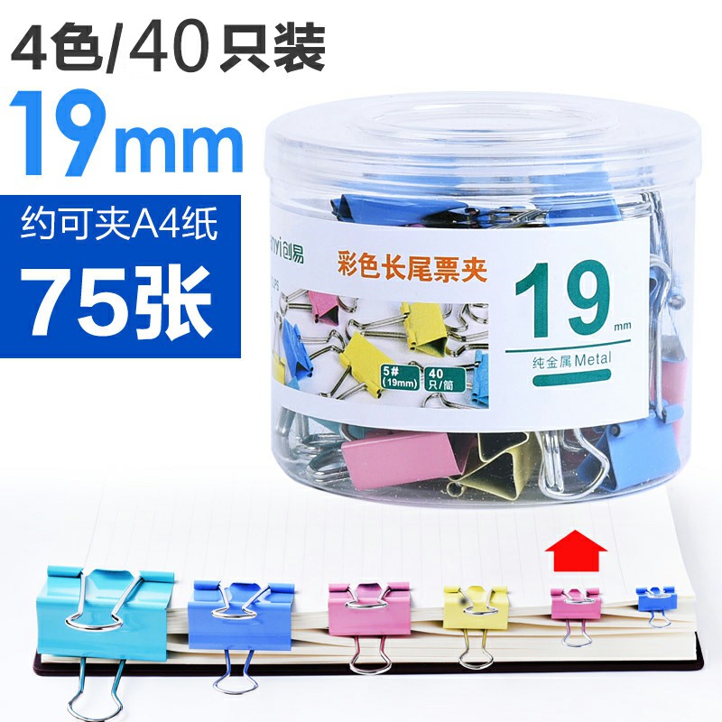 4色40支19mm-彩色長尾夾大中小號黑色燕尾夾文件夾子文具學生用書夾子試卷夾辦公用品大全金屬小票固定夾子辦公室票夾批發