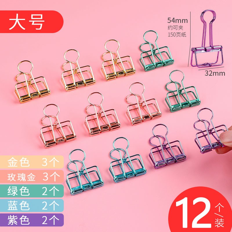 大號 54mm 12個每盒-彩色長尾夾大中小號黑色燕尾夾文件夾子文具學(xué)生用書夾子試卷夾辦公用品大全金屬小票固定夾子辦公室票夾批發(fā)