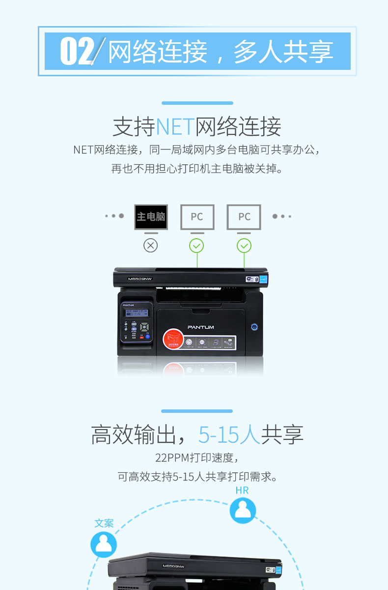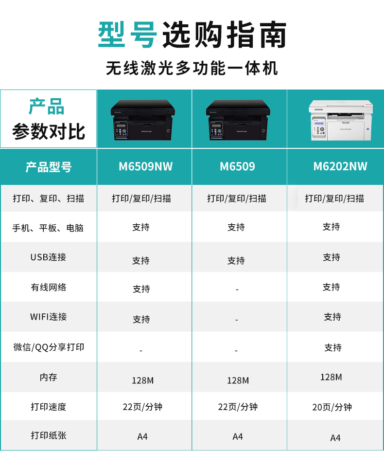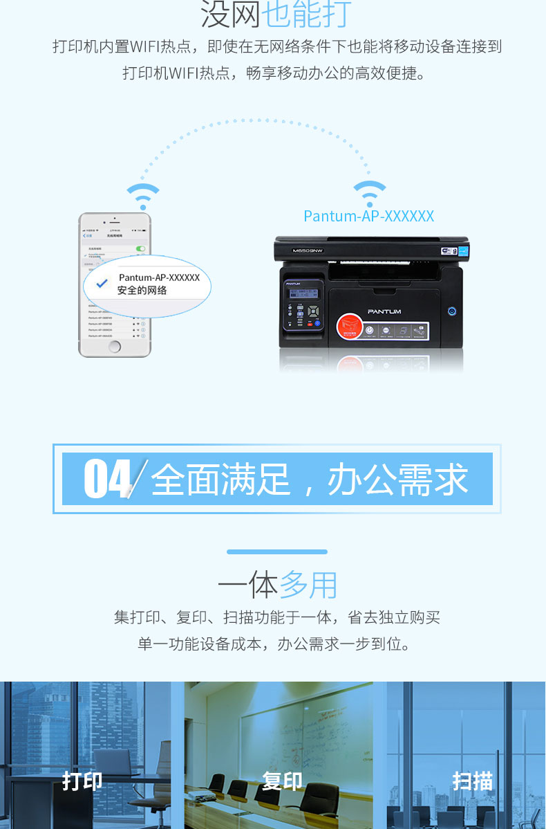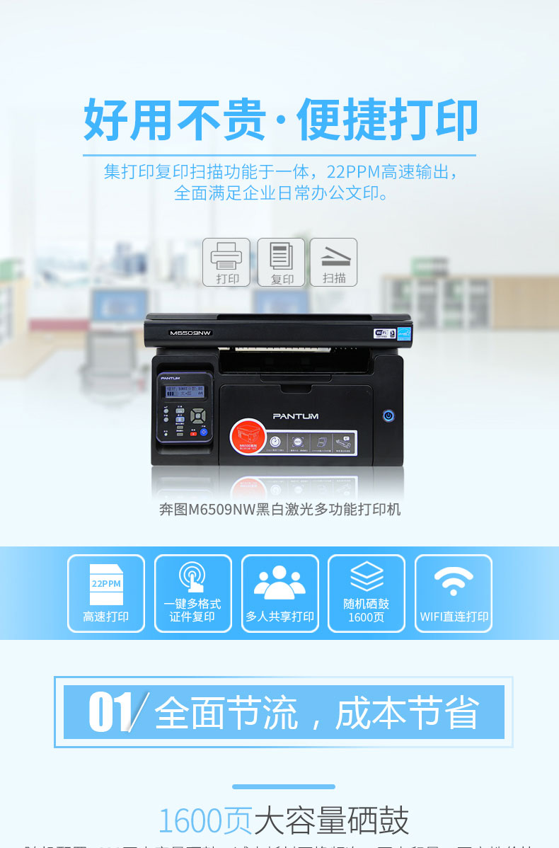 奔圖M6509NW黑白激光多功能一體機 打印 復印 掃描三合一打印機